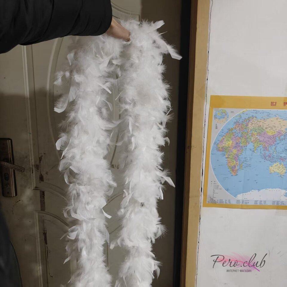 Боа из перьев петуха и индейки 80 г, 2 м белого цвета – стильный аксессуар для ярких образов.