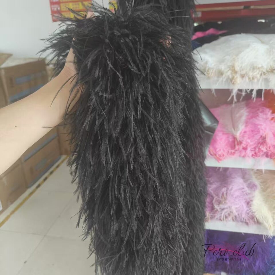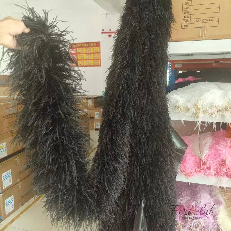 Премиальное толстое боа из натуральных перьев страуса, 25-слойное, черного цвета, длиной 2 метра — эффектный аксессуар для шоу, фотосессий и сценических костюмов.