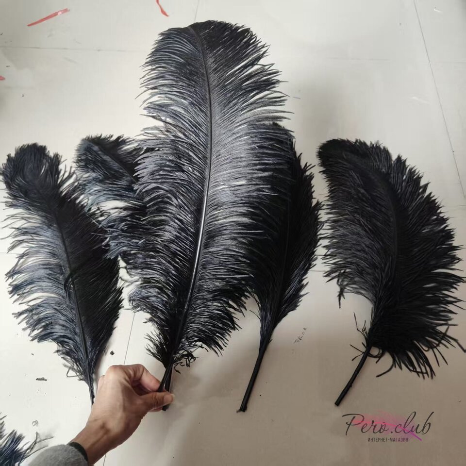 Премиум перья страуса 60-65 см, 1 шт., Черный цвет