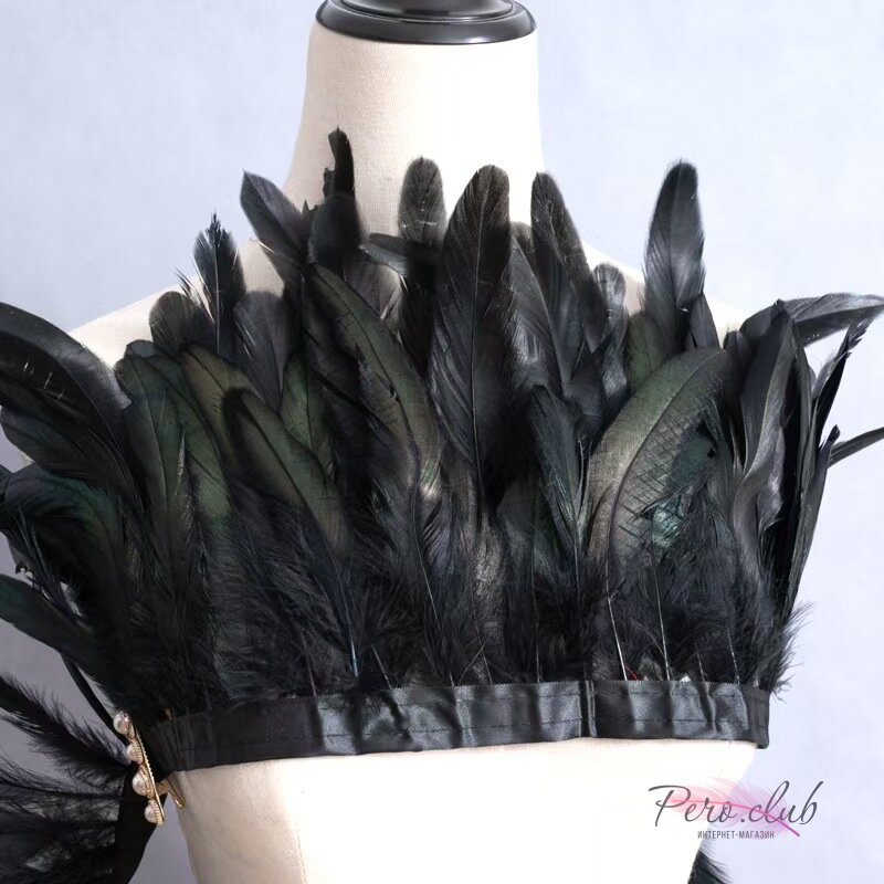 Тесьма из перьев гуся на ленте 15–20 см, длина 1 м. Классический черный цвет для декора и одежды.