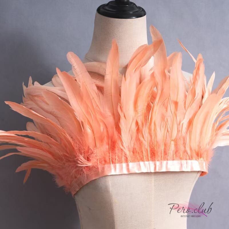 Персиковая тесьма из гусиных перьев 15–20 см на ленте, 1 метр.