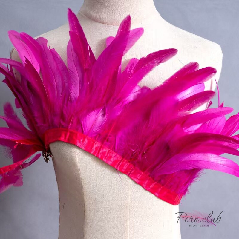 Тесьма из перьев гуся на ленте 15–20 см, 1 метр. Яркий цвет фуксия для декора и костюмов.