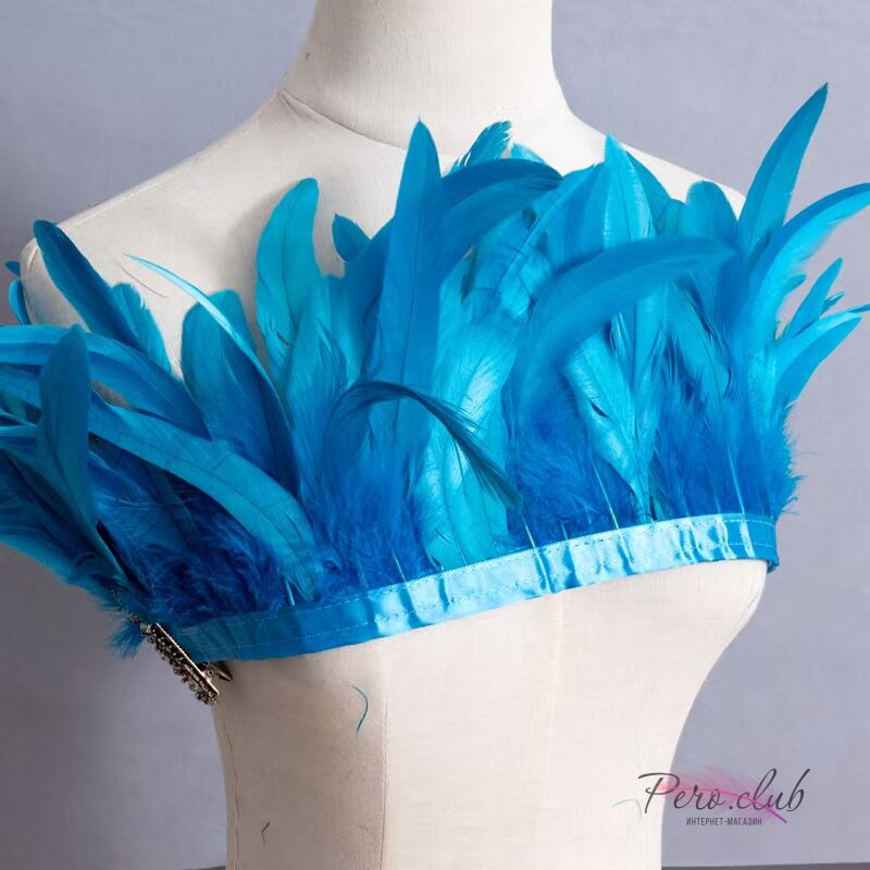 Тесьма из перьев гуся на ленте 15-20 см, 1 м, Голубой цвет