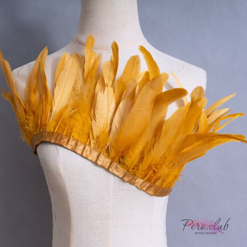 Тесьма из перьев гуся на ленте 15-20 см, 1 м, Золотистый цвет